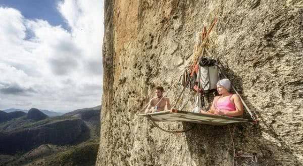 这对夫妻在闲暇之余,常常选择进行攀岩运动。不过,他们的攀岩方式与一般人不同,他们并不会选择安全的室内攀岩场地,而是直接挑战陡峭的悬崖。他们的每一次攀岩出发,都会带上大量的工具和装备。而这些装备中,最特别的要数食物和帐篷。这对夫妻会为自己准备充足的食物,还带上可以固定在悬崖上的简易帐篷。 这些物资的准备,主要是为了防止在攀岩过程中突然发生意外。因为有时候,他们并不能一次性完成整个攀爬,可能只能攀岩到半山腰。为了确保安全,也为了能在过程中好好休息,他们便会在悬崖的半山腰搭建一个简易帐篷。对于普通人来说,这种生活无疑是非常冒险的,但对这对夫妻而言,却是一种别样的享受。因为在这里,他们能够欣赏到别人无法领略到的美丽风景,眼前的一切如同人间仙境。